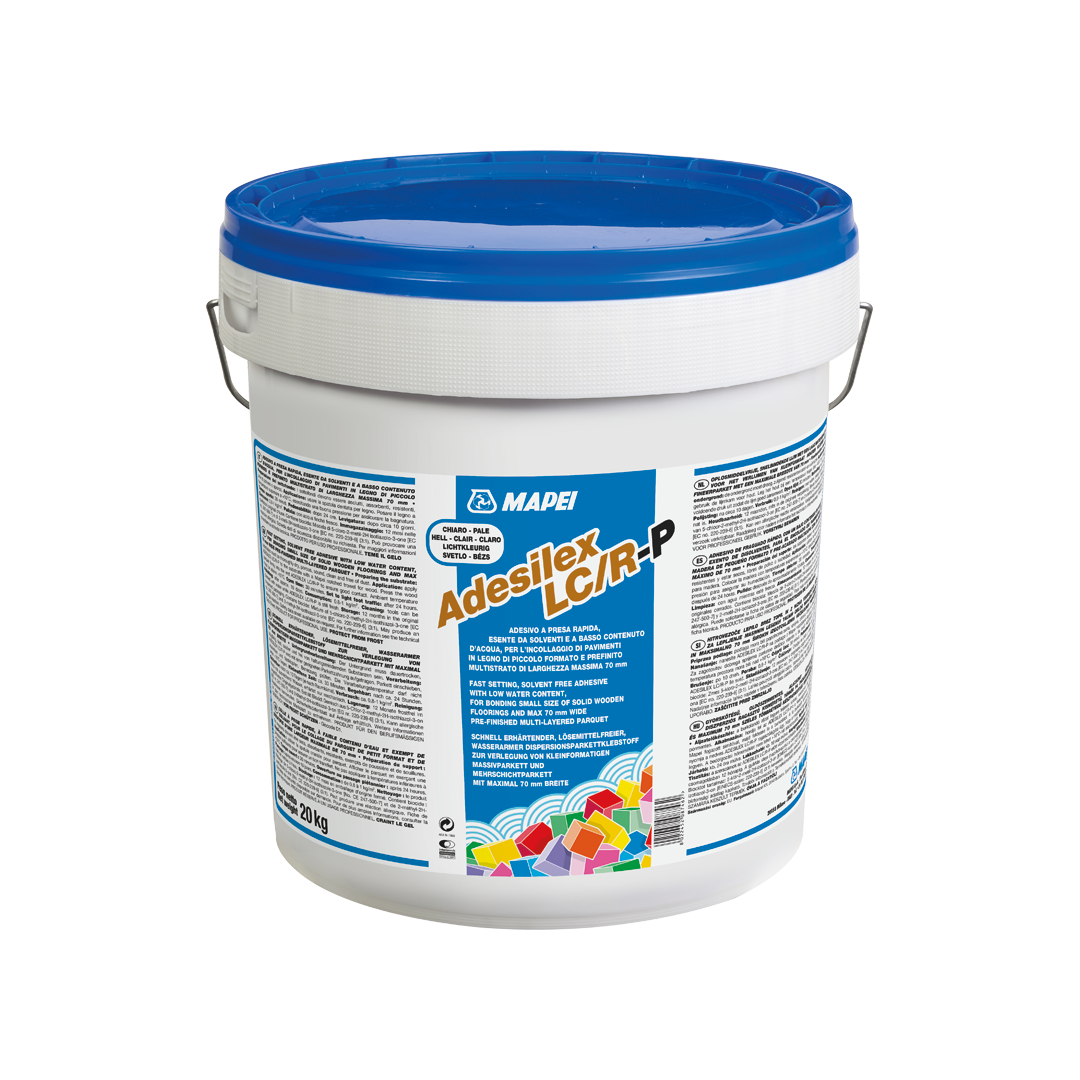 Quick-drying adhesive in a water dispersion for bonding parquet to cement screeds made of MAPECEM, MAPECEM PRONTO, TOPCEM or TOPCEM PRONTO, wooden substrates, particleboard, masonite boards, and heated floors. TECHNICAL DATA: Consistency: thick paste Color: beige and brown Flammability: no Application temperature: from 10°C to 30°C Open time: about 30 minutes Ready for stepping: after 24 hours Varnishing: after completely drying (minimum 10 days) EMICODE: EC1 Plus – very low emissions of volatile organic compounds (VOCs). Storage: 24 months. Keep from freezing. Application: notched trowel. Consumption rate: 0.8-1.0 kg/m2. Packaging: boxes of 20 and 12 kg.