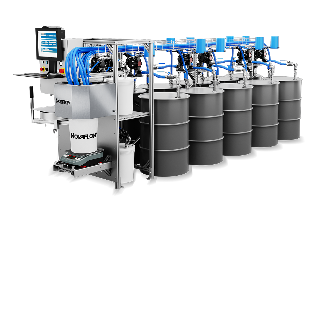FAST & ACCURATE Dispenses from 4.6l to 20l batches in under 3 minutes with precise, repeatable results using Novaflow technology COST-EFFECTIVE AUTOMATION Delivers full automation benefits without large capital investment—ideal for small batch, pail-sized production FLEXIBLE & ADAPTABLE Three configurations, adjustable shelf, and robust pumps suit various container sizes and...